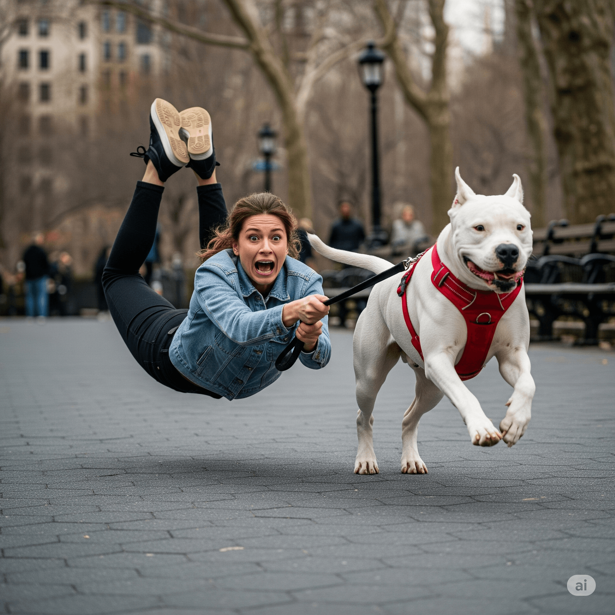 El perro debe ir sujeto mediante una restricción generada por un arnés y una correa enganchada al arnés, de esto depende la seguridad y el éxito del comportamiento del perro.